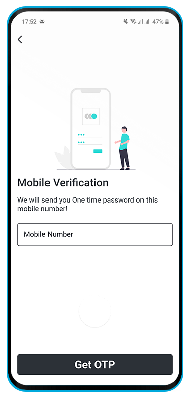 Open your application>Tap on Next.>Tap on get In>Enter Your mobile Number> For first time provide your information as asked> After completion you are ready to use application with device.