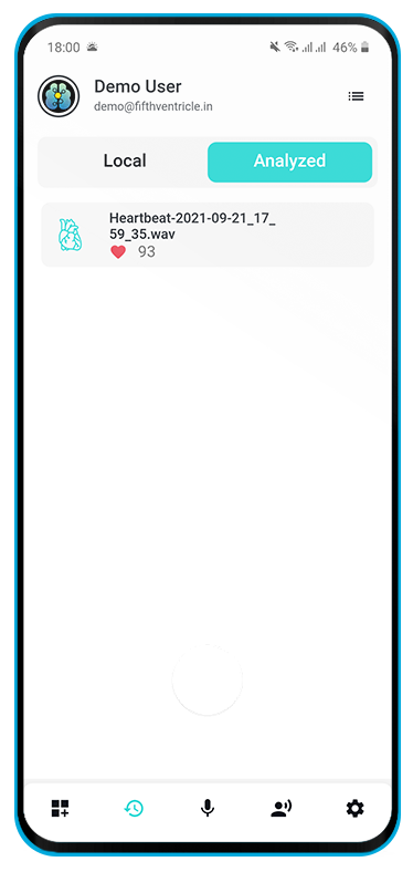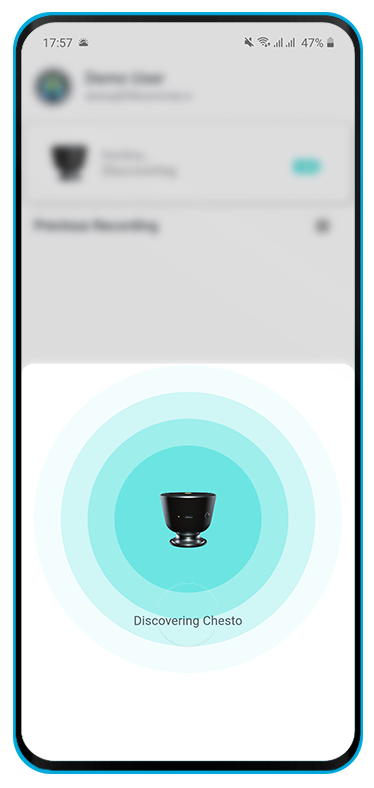 Open application Make sure chesto is connected with your application>Your sound are listen by application pre-default.You can remove this predefault setting in app. Tap on microphone icon> Tap on Start recording> Your recording is started> Tap on stop to stop recording> Tap on Analyze. Your file will be analyzed.