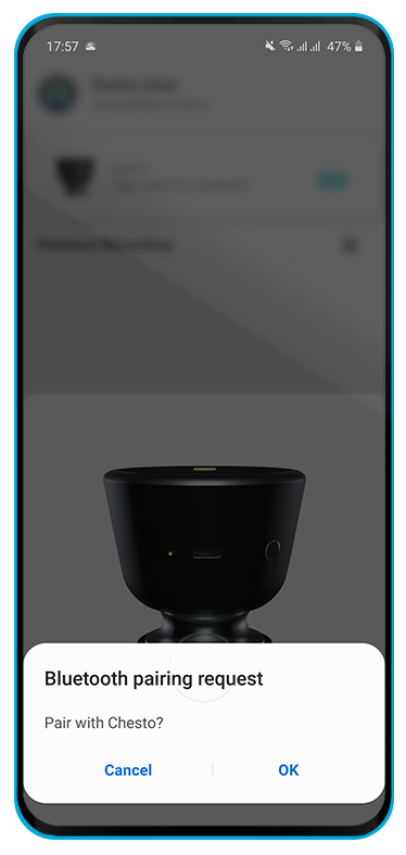 Open application Make sure chesto is connected with your application>Your sound are listen by application pre-default.You can remove this predefault setting in app. Tap on microphone icon> Tap on Start recording> Your recording is started> Tap on stop to stop recording> Now You can hear your recording.